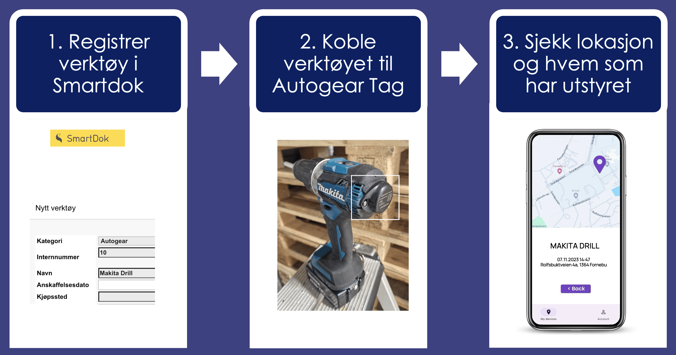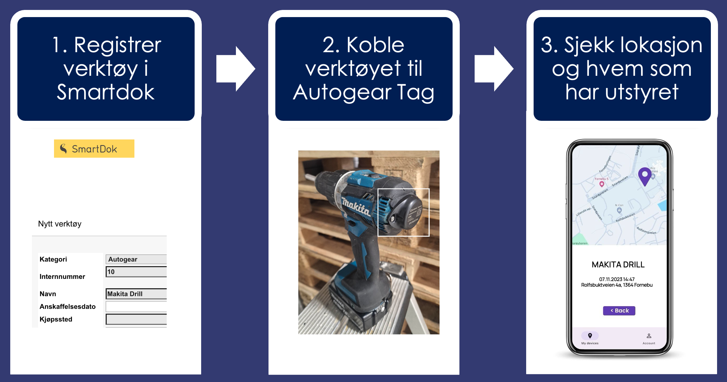 Med Autogear TAG og Autogear Asset får dere stålkontroll på hvor utstyret befinner seg, og hvem som har det med seg eller hvem som har satt det igjen. Mindre leting, mer produktivite med Autogear